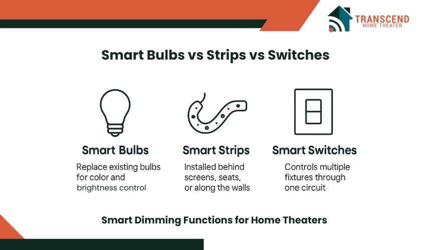 Choosing the right smart lighting product depends on budget, flexibility, and installation needs. Each option has unique advantages and limitations that influence the final theater setup.