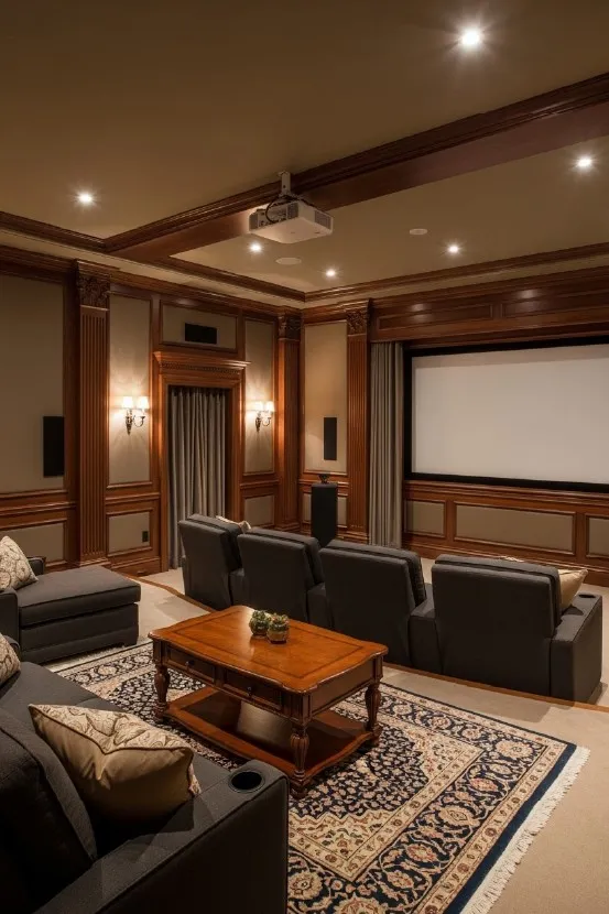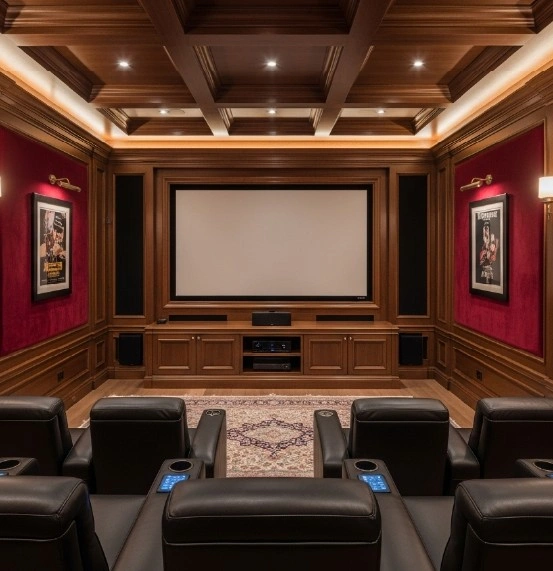 A classic home theater is defined by balance, craftsmanship, and enduring beauty. It is designed for homeowners who value tradition, comfort, and an atmosphere that never feels outdated. Rich materials, warm lighting, and thoughtful detailing create a cinematic space that feels refined the moment you step inside.