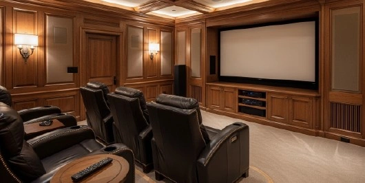 As specialists in classic home theater design across Maryland, Virginia, and Washington, DC, we create timeless cinema rooms that blend traditional interior finishes with modern performance. From handcrafted wood details to concealed audio systems, every element is carefully planned to preserve elegance while delivering a premium viewing experience.