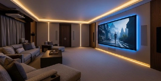 We evaluate room dimensions, traffic flow, seating needs, and media goals before finalizing the design. Whether the space leans toward a high-end media room or a relaxed recreation area, the layout supports comfort and usability.