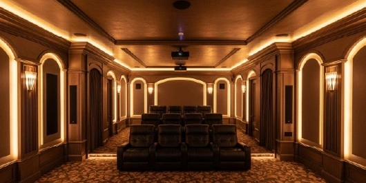 A professionally designed custom-themed home theater transforms entertainment into self-expression. It is not just a room for watching movies. It is a space that represents who you are.