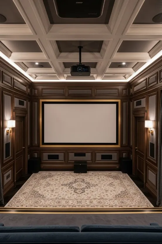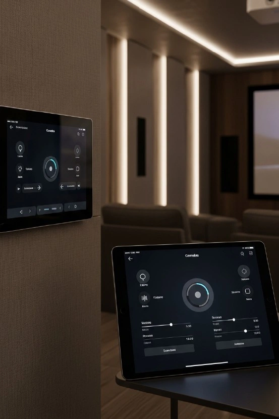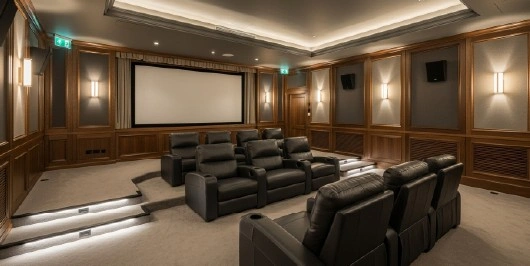- Custom lighting scenes designed for private cinema ambiance