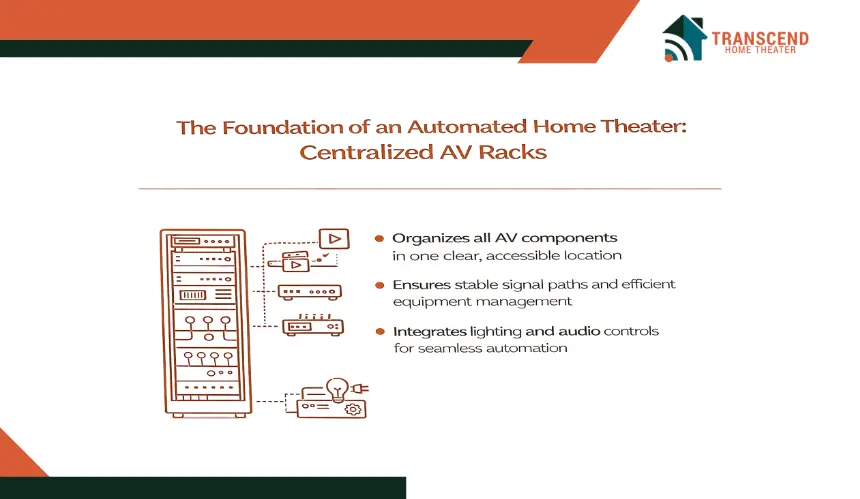 Centralizing equipment simplifies how automation platforms manage theater functions. When devices are grouped in a single rack, the system can process commands more efficiently and reduce the risk of communication delays.