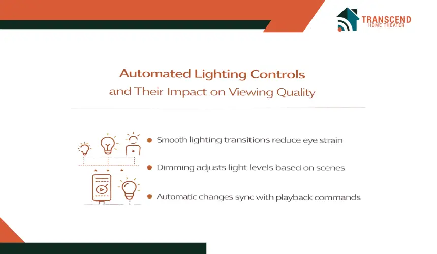 For example, lights can fade as a movie begins, brighten slightly during intermissions, or return to full illumination once content ends.