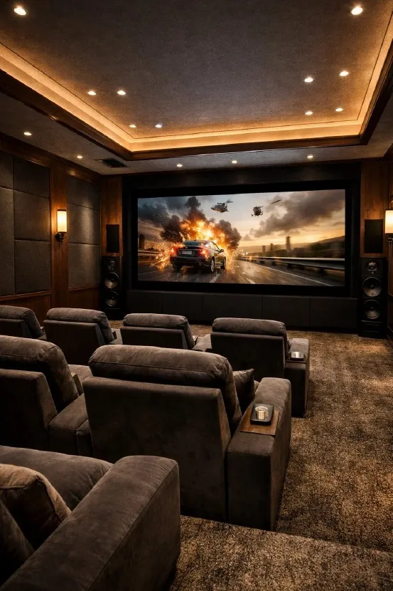 Unlike large entertainment theaters, private cinemas focus on intimacy and performance. Smaller layouts, refined finishes, and precise audio tuning create a distraction-free cinematic environment.