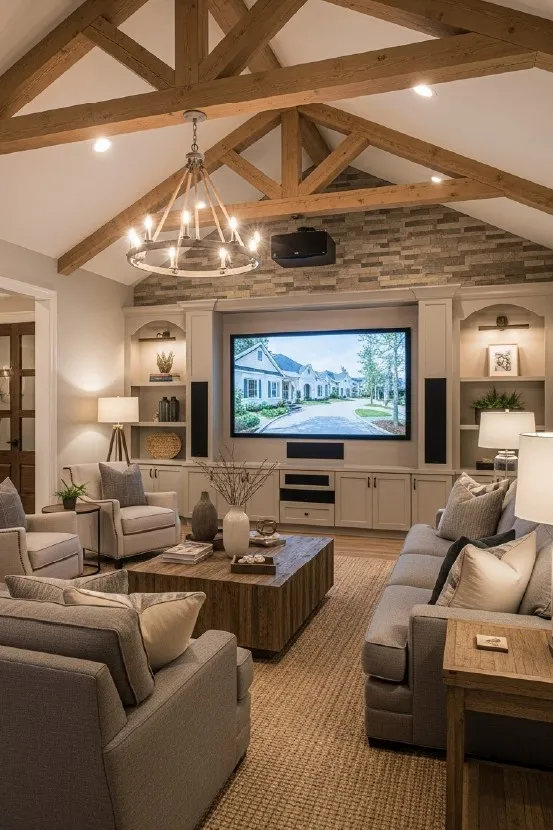 Our modern farmhouse theater designs often include: