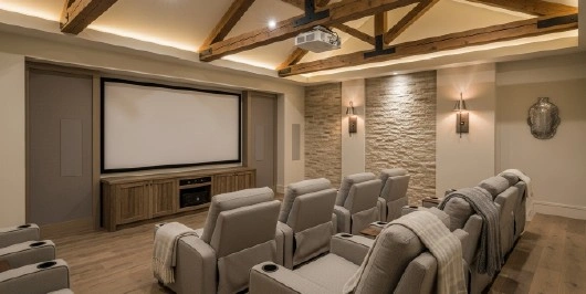- Specialists in farmhouse-style media rooms and smart entertainment